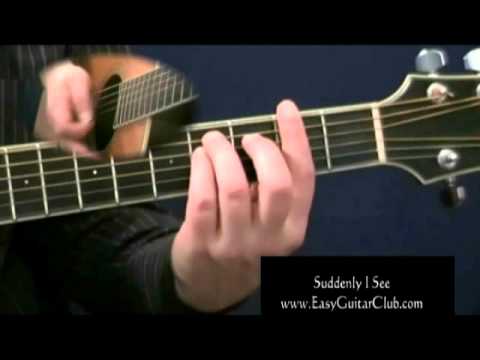 How To Play KT Tunstall Suddenly I See - Suddenly I See Chords - http://www.jerrysguitarbar.com http://facebook.com/jerrysguitarbar Acoustic guitar lesson teaching how to play Suddenly I See by KT Tunstall The lesson begins ...